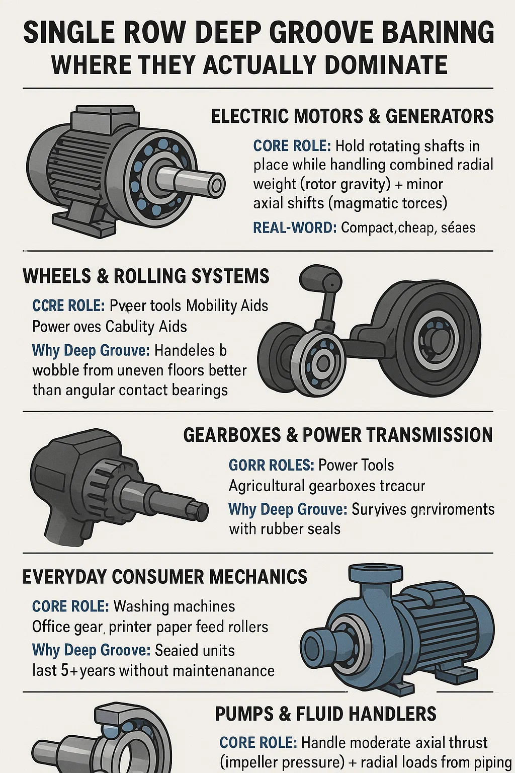 Eénrijige groefkogellagers : Waar ze feitelijk domineren