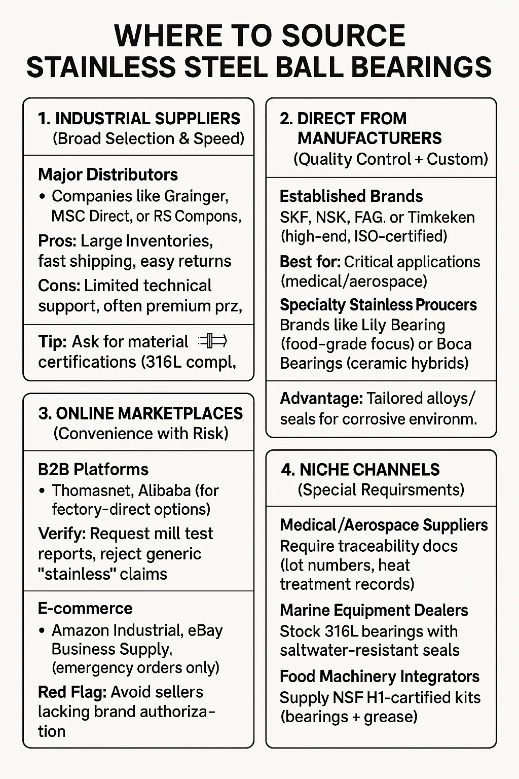 Voorraad 316L lagers met zoutwaterbestendige afdichtingen.